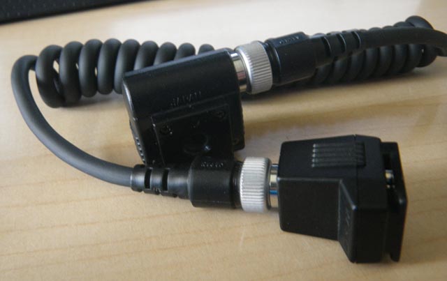 In the image below, I have the Hot Shoe Adapter Fg, connected to a Hot Shoe Adapter F (31046) via a F5P cord!