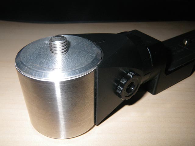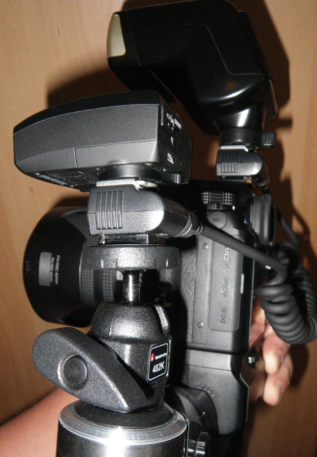 Here you can see my custom Pentax AF400T bracket insert. It's connected to the Manfrotto 482K.