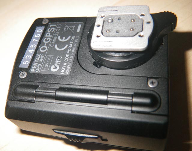 Here you can see the mechanism of connecting the O-GPS-1 and the Pentax flash accessories.