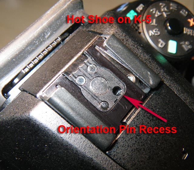The K-5 has the recess on the Hot Shoe for accessories that have an orientation pin.